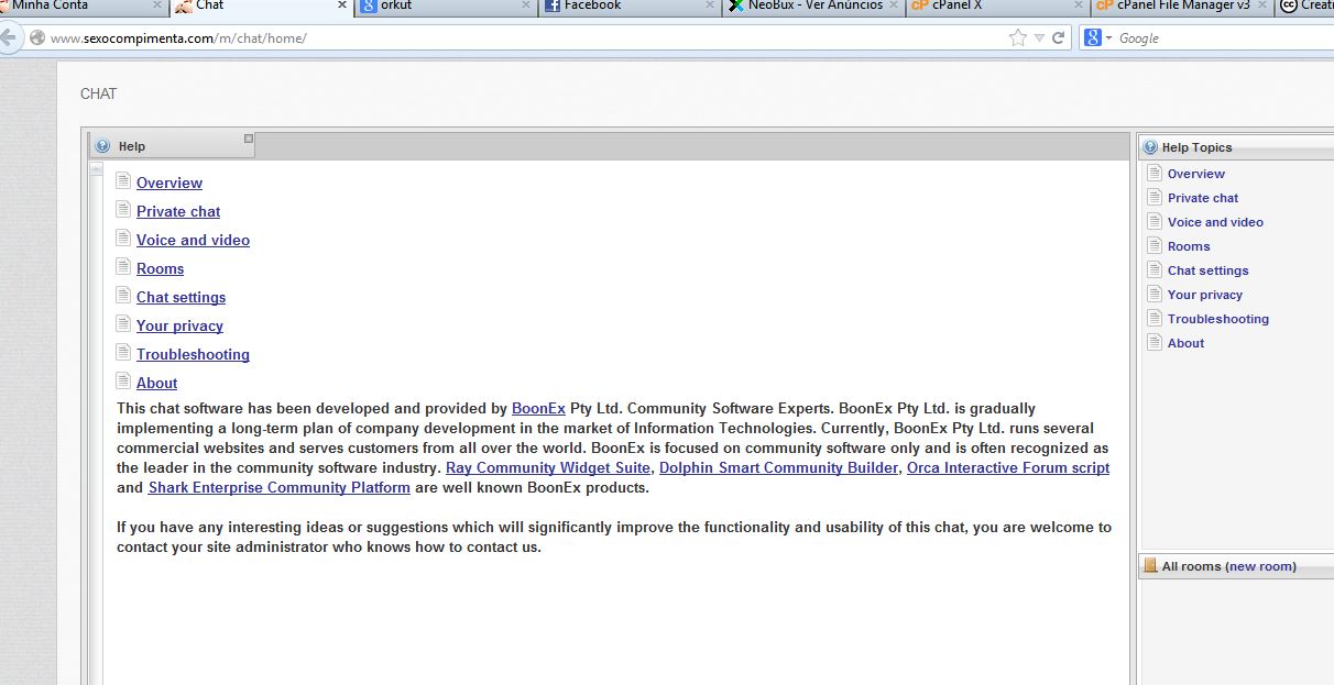 That's like the about us text, albeit a little harder to edit away. Edit /flash/modules/chat/help/user.xml and look for the "about" topic at the end of the file. BoonEx Certified Host: Zarconia.net - Fully Supported Shared and Dedicated for Dolphin |