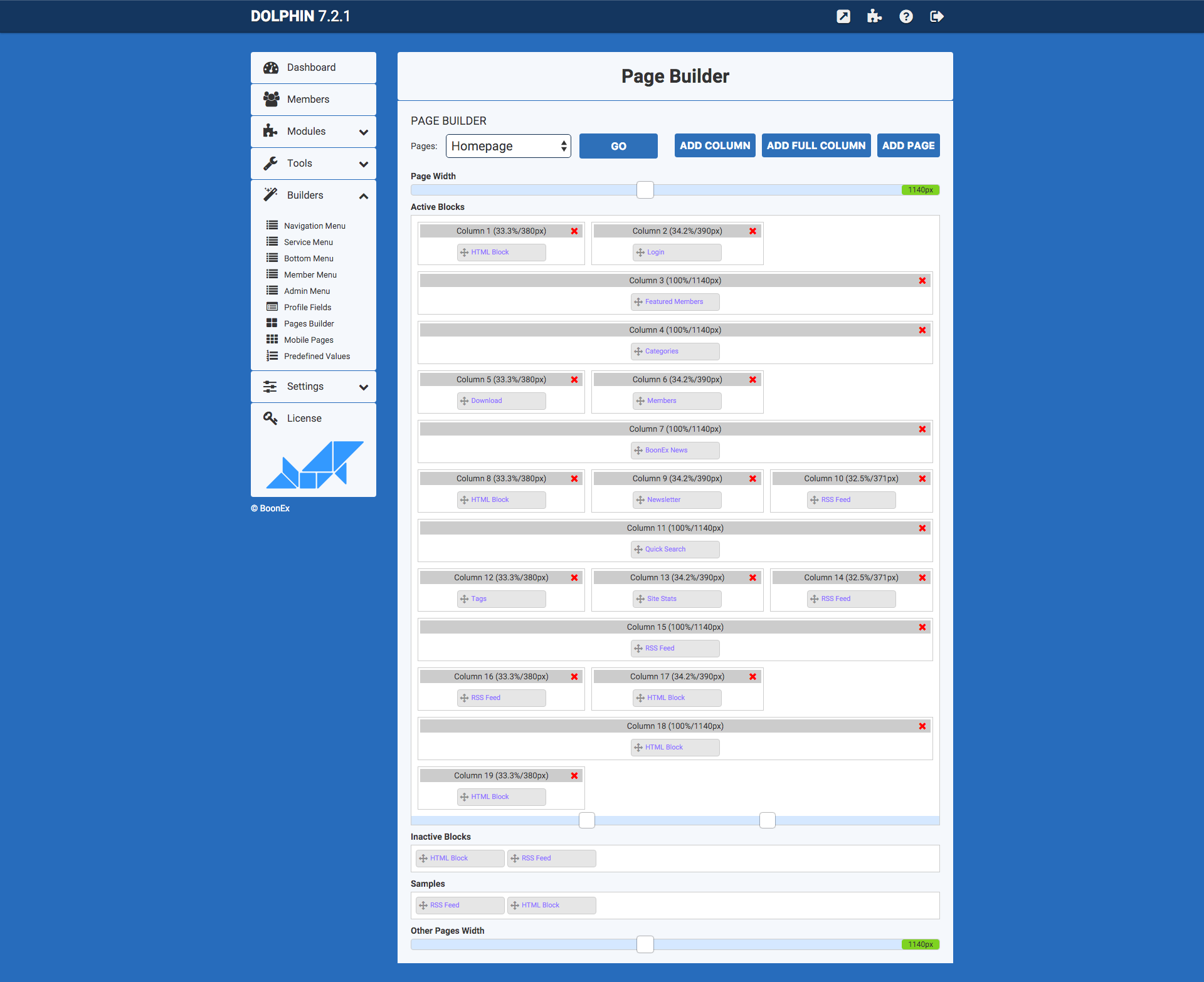 I've seen something similar by Hypernova when I was looking for template which you can see at: http://tinyurl.com/psaf7d3 Other than the top Menu which made me so dizzy with so many buttons as if I am playing games with my 10yr old son, but the template's body is awesome ! To have the freedom to use the combination of "full width column" and "Blocks" as well as using different colors for different Blocks section is really great which can make your site somewhat unique from other Dolphin sites. But, I am afraid this might put some graphic designers out of business  |