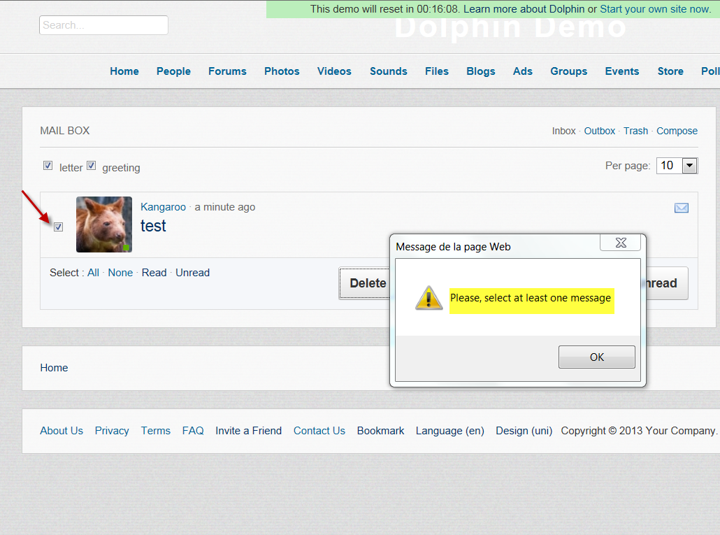 When you select one or more messages to delete, the system asks to check at least one mail problem checked dolphin demo.