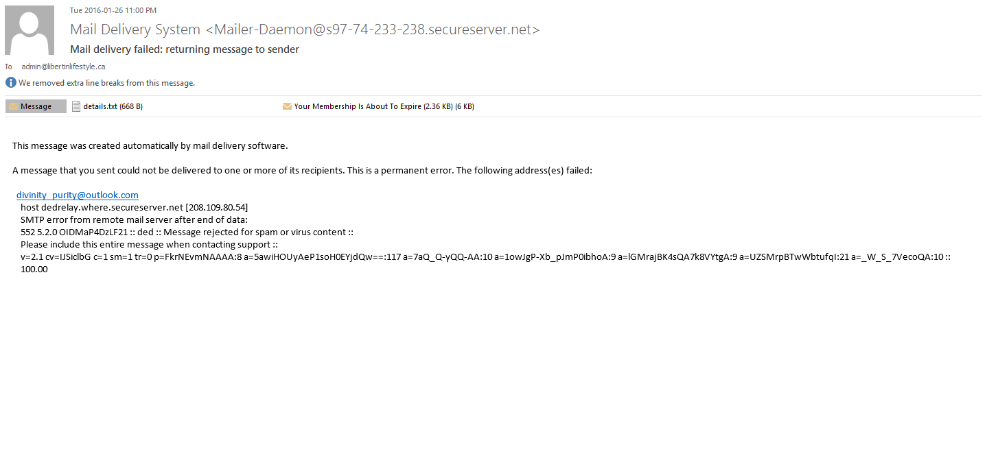 Hi all, All my outgoing emails for Membership notification To expire bounce back as mail delivery fail, but I test these emails from my outlook and they work.