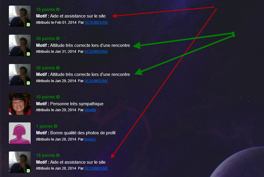 Hallo, Ich habe mir diese Mod gekauft. Nach dem Installieren und ersten versuchen Mitglieder zu bewerten merkte ich das der Grund für die ich Punkte vergebe oder nehme nicht festgehalten wird. Währe es nicht schön wenn die Mitglieder sehen können von wem und warum sie Punkte bekommen bzw. abgezogen wurden? Übersetzt per Google: Hello, I bought this mod. After you install and try first to rate members I realized that the reason for the points I forgive or not to use is recorded. Would be it be nice if the members can see by whom and why they get points or were withdrawn?