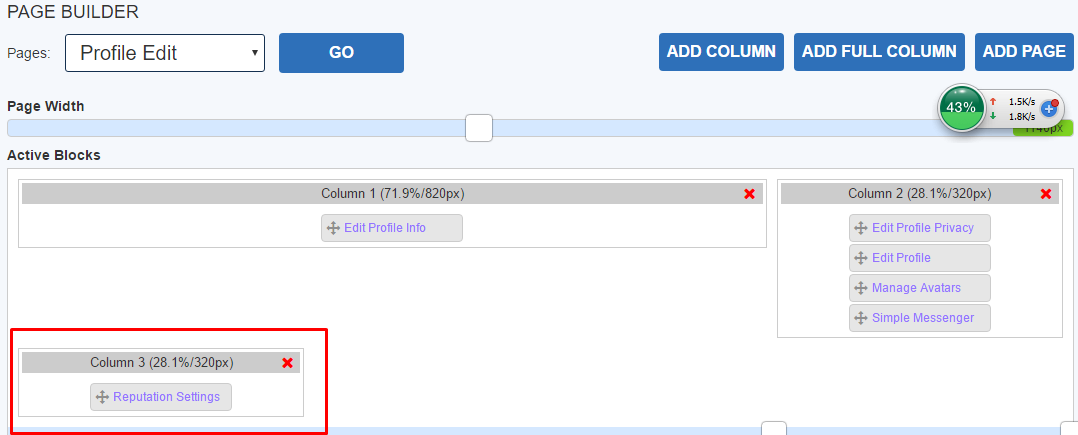 In the admin area, profile edit page, is this correct? Do I need to drag the "Reputation Settings" to Column 2 ?
