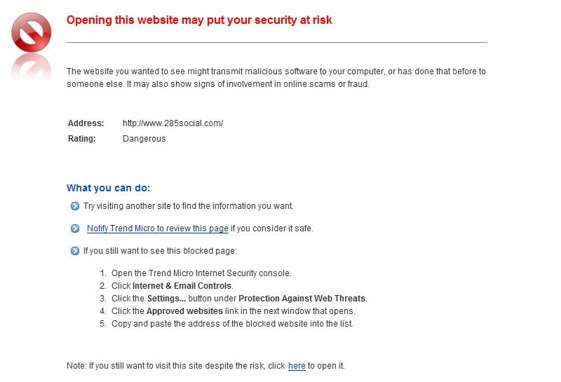 The Trend Micro warning my be a false positive, but anyone with TM installed that tries to view your site, will likely get the same warning. You might want to contact TM, and ask them why you have that rating. My opinions expressed on this site, in no way represent those of Boonex or Boonex employees. |