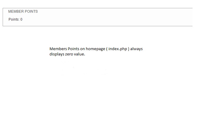 I brought the Ultimate Points module by Modzzz, and it works "GREAT". I have performed a "Service Call" on the "Members Point Block" and now the "Members Point Block" displays on the homepage ( index.php ) however, the number of points displayed is always zero, and not the actual number of points the logged in member has. Dose anyone know how I can make the "Members Point Block" display the actual number of points the logged in member has? I've also attached a photo.