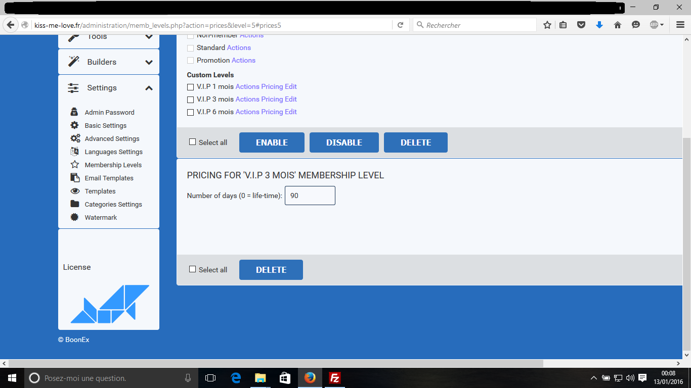 Quand je créer un niveau d'abonnement, tout se passe bien jusqu'au moment ou je veux entrer le prix, avant on indiqué la durée de l'abonnement et le prix puis on enregistré, mais la problème.... On me demande bien le nombre de jours, mais on à pas le champs pour le prix et on ne peux pas sauvegarder car le seul bouton c'est "DELETE", De plus quand on va sur mon site en tant que membre, et que l'on se rend dans la section "My membership" (Mon abonnement), on ne vois pas les abonnements que j'ai mis en place.