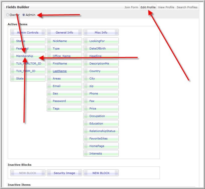 I am confused at why the membership only appears in the admin section How do i get it to appear if someone wants to edit their profile and let say upgrade the membership. When I as the admin log in I see the membership options but if I log in as a guest and then edit my profile membership options are not available and the block is not in the block builder page? See pics