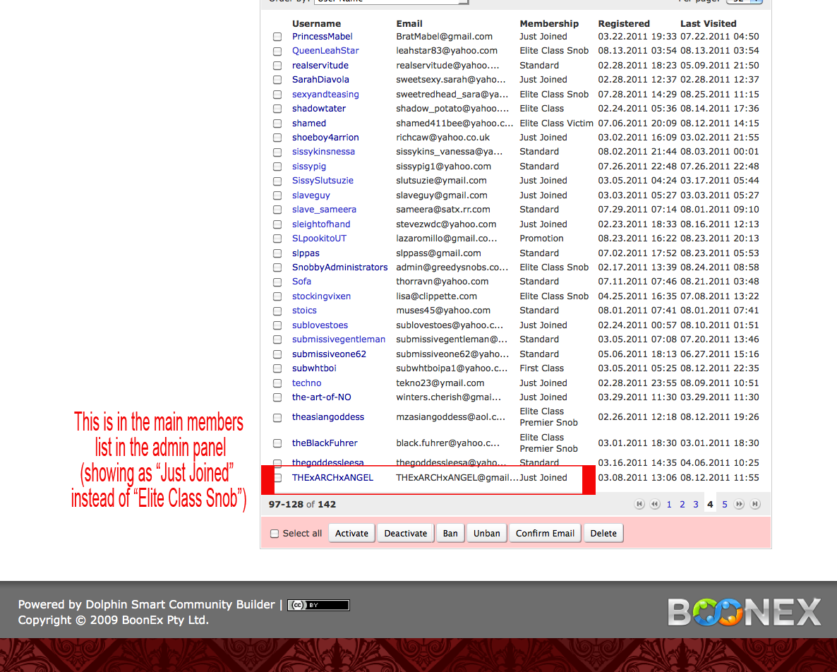 When a member updates their membership, it doesn't show in the main admin panel as the upgraded membership level, although it does show correctly on their profile. I've attached images for you to see what I am talking about. The member I'm using as an example upgraded to the top level membership that we call "Elite Class Snob". However in the admin panel list of members, it shows her membership as our default membership: "Just Joined." To add to the confusion, it DOES show correctly when I click the list of "Elite Class Snob" memberships, she is listed there and next to her name is the correct membership.