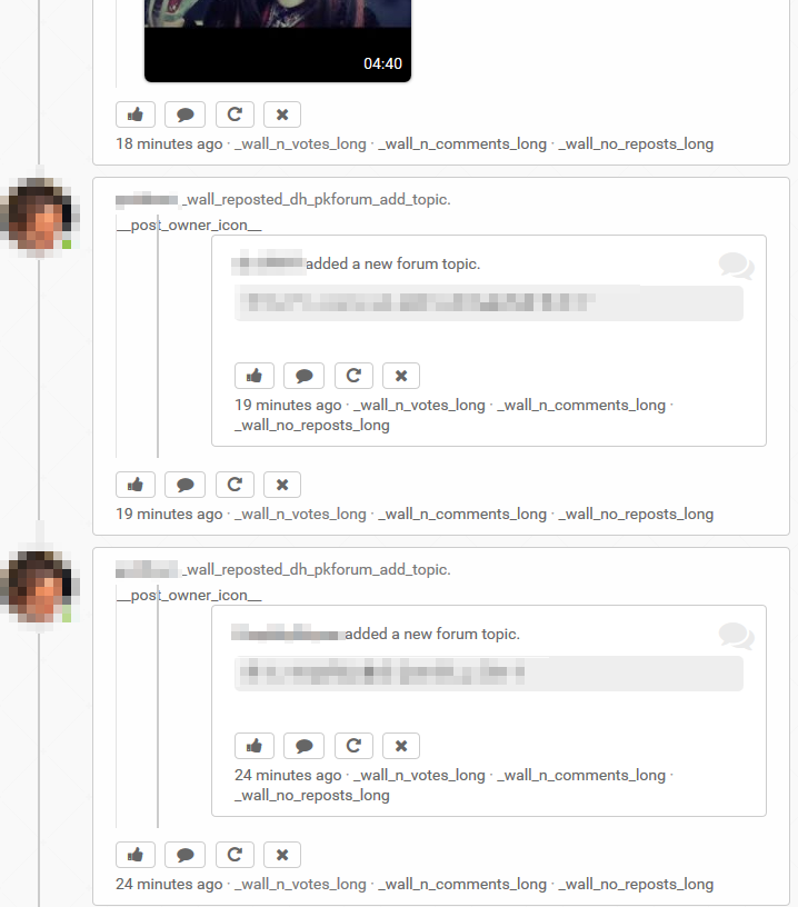 Upgraded to v7.3 on several websites and have the same repeated "__post_owner_icon__" across them all in the timeline when a guest comments on anything. How do I fix? What's missing that shouldn't be? |