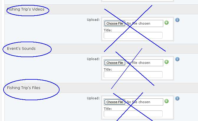 Event Sounds, Event Videos, Event Files. I want to delete these sections completely. I do not want them visible or mandatory as a part of event creation. I hope it is more clear now.