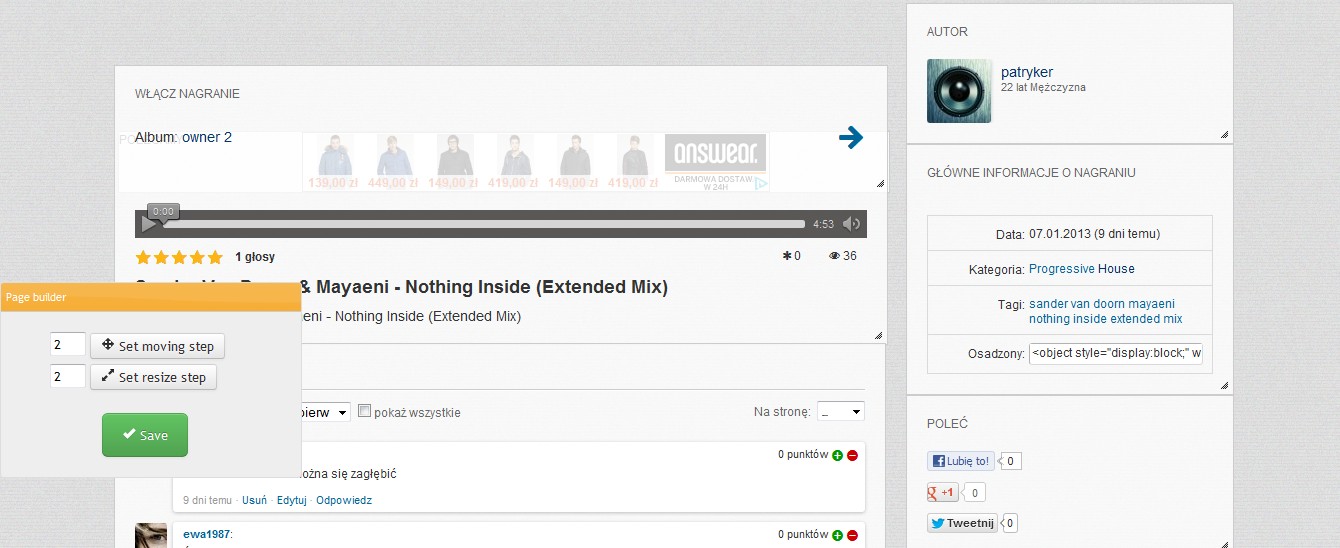 - There's some blocks such as "Comment block" which requires automatic height to be automatically expandable in order to show new posted comments. To make a height of such blocks expandable just double click on the bottom edge of this block and its height will be set to "auto".