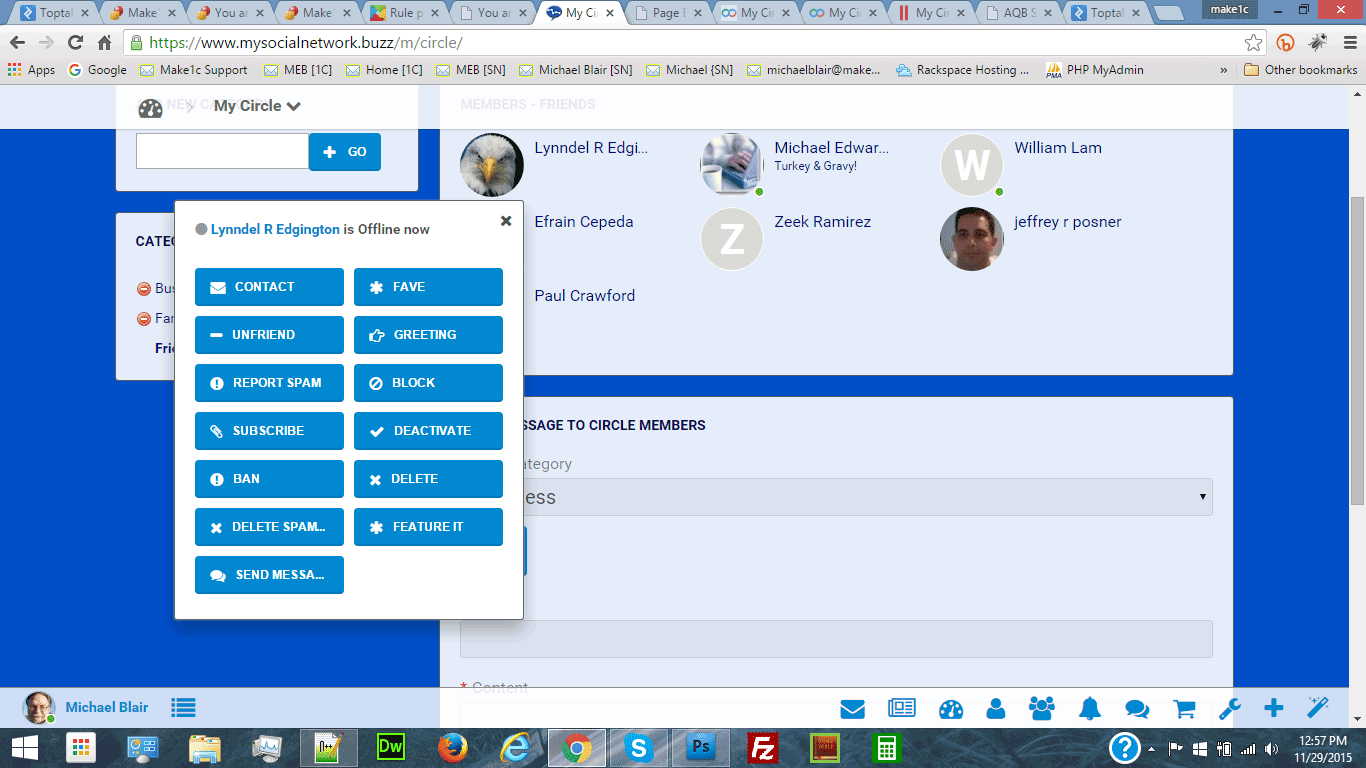 Hey Modzzz, I just went off and tried to send a message and got this error: Database error in TruckingSpace Social Network Community SELECT `associate_id` AS `ID` FROM `modzzz_circle_category` WHERE `id`=5 Mysql error: Unknown column 'associate_id' in 'field list'