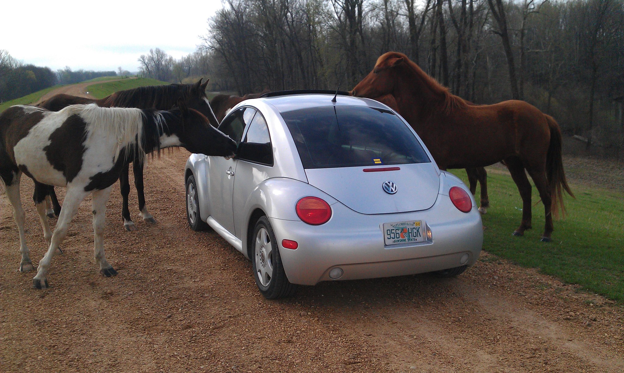 The horses still love my bug. The place is remote. ManOfTeal.COM a Proud UNA site, six years running strong! |