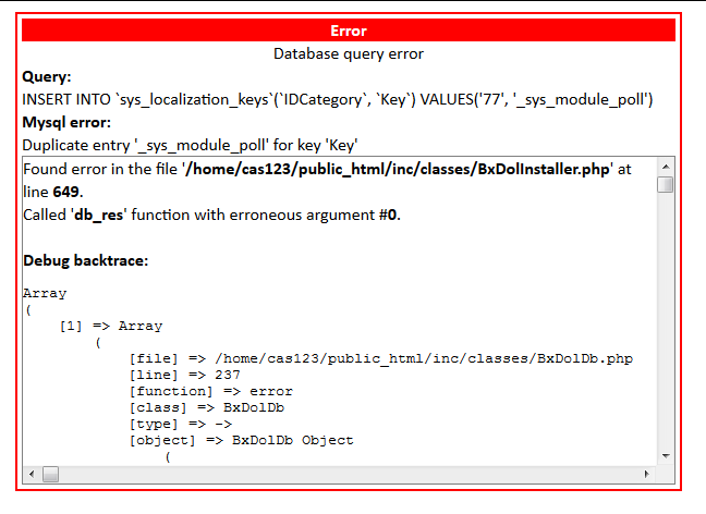 Mysql error: Duplicate entry 'bx_poll-add-poll-Module-get_wall_post' for key 'handler'