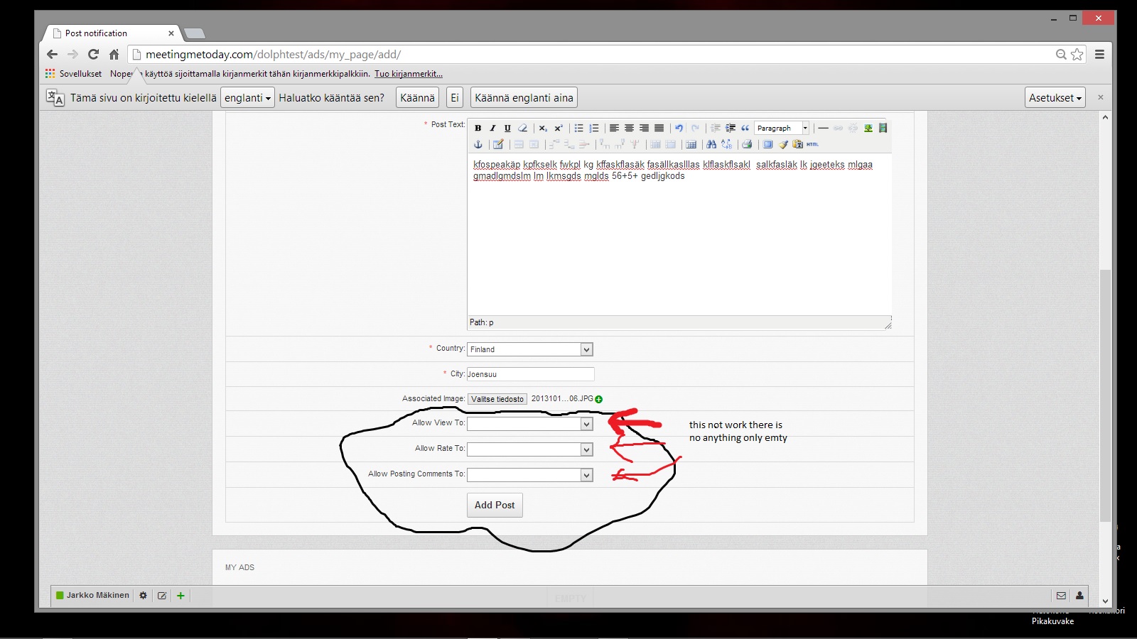 i dont understand what you mean, there down that 3 box there is no anything there have to be something like Allow view to: Public, Me only, Members, friends Allow rare to: Public, Me only, Members, friends Allow posting comments to: Public, Me only, Members, friends but that 3 box is empty so how and where that need to fix so that works well? |