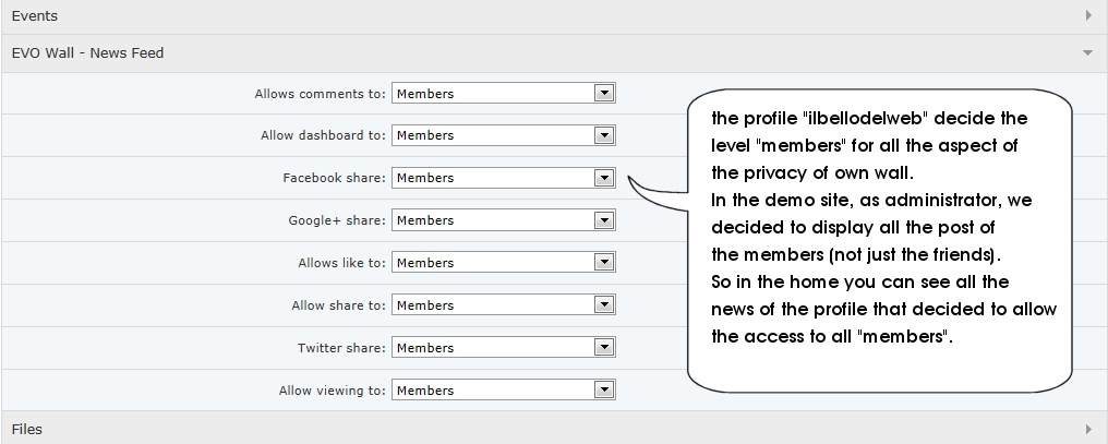 - in the profile page you can allow the access just to the friends, or to all the members (but also it's possible a public access or the option "only me"