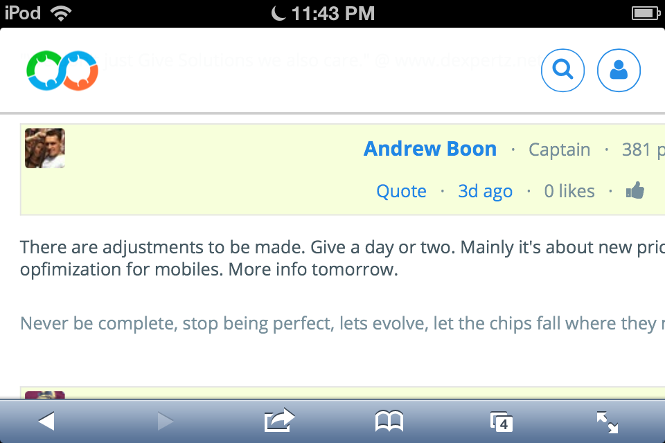 Well, it is more mobile friendly. Although after login in profile page has no direct link to forum. Had to search.using Android. From forum llinks to Home/features etc. did not work. Still needed to adjust page to view forum post sliding horizontal. Vunderba..... Challenge Yourself to be the Best...... Hosting from Zarconia.net |