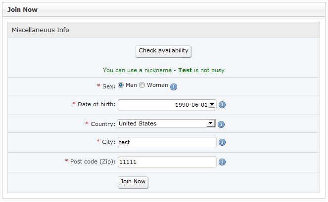 Nickname suggestion allows your site visitors to complete the join form on your site quickly!