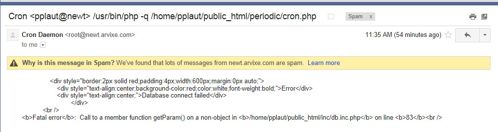 So, this has nothing to do with my cron job failing...?