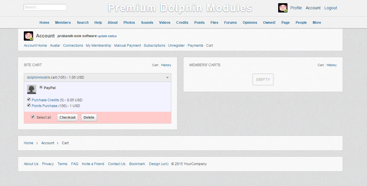 @baloo - A patch will be released shortly to make the checkout more friendly as suggested. Integration with my other modules will come into place as time goes on. Paypal email is jeromemingo@gmail.com - http://www.boonex.com/market/posts/modzzz |