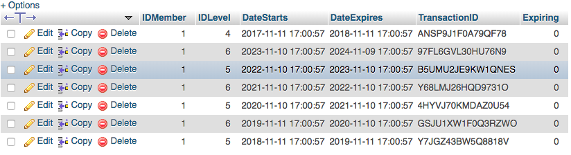2- Each time a membership is bought, there is new entry added to the table "sys_acl_levels_members" For the same user, instead of one line being updated (see picture). Is that how it is supposed to be? When I manually modify that database table for the first entry, the membership change is reflected on the site. Is that the only place membership level is managed in the database?