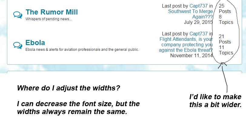 Where can I adjust the width percentages of post topics? Can't seem to find where it is in the css. The attached image will make more sense.... Thanks! |