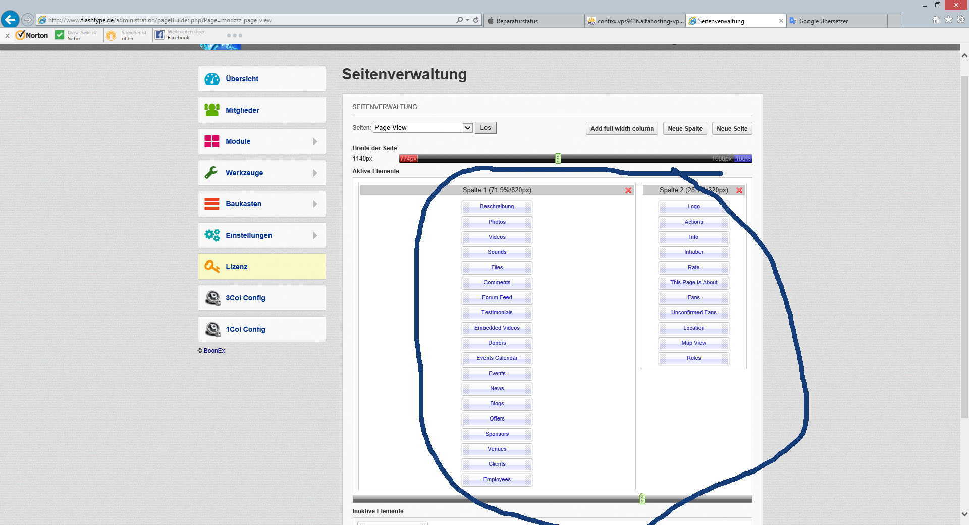 I also can't do much when creating a page, for example I can't adding events, the widgets are all active but how do you add items? Anyone have this module working with 7.2.1 ?