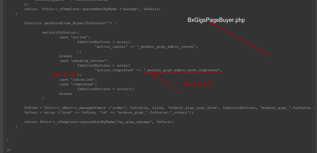 Часть вторая, Момент истины. Чтобы сохранить последние крохи самооценки, я привлекаю для решению проблемы, своего советника, уважаемого мной разработчика, да и просто хорошего человека, который мне очень много помог с Дельфином. Он поколдовав над моим сайтом, и целый и вечер по локоть наковырявшись в чужом коде, вынес следующий вердикт. ( барабанная дробь....... ) В том что модуль не работает как надо нужно винить невнимательность разработчика modzzz. Недостаточная фильтрация ( seller/buyer/id ). Из за этого раздел покупателя полностью лишен функциональности. ( покупатель денежку через Paypal переводит, а потом.. никому не советует пользоваться услугами этого сайта. не? ) А так же кто угодно может видеть, аннулировать, манипулировать и стирать чужие услуги. Отсутствуют кнопки управления в разделе покупателя. Тем самым превращая популярную идею fiverr.com в нервотрепку для пользователей и администрации и в лохотрон. Конечно же я отблагодарила специалиста за успокоенные нервы, компенсировав потраченное им время. И чтобы поделится с сообществом своей бедой и добиться справедливости примялась писать это сообщение.