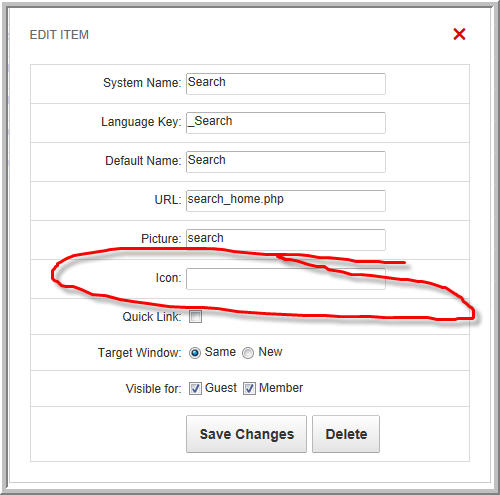 Man do I need to work on my communication skills LOL the picture I was talking about was for the icon you wanted to change...I think this is what you want to change but not sure...