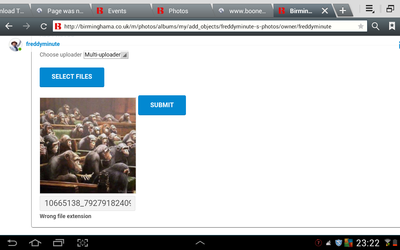 Photos not uploading when using tablet or smartphone. Message: wrong extension file. uploaded the same picture using my laptop, it work fine. Sarkozy |