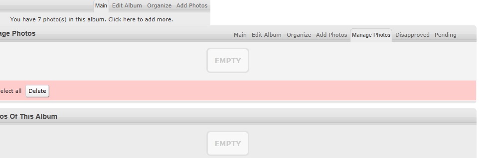I uploaded some photo's. in the screen it says there are 7 photo's in this album. When i click on the hyperlink i don't see any photo's???