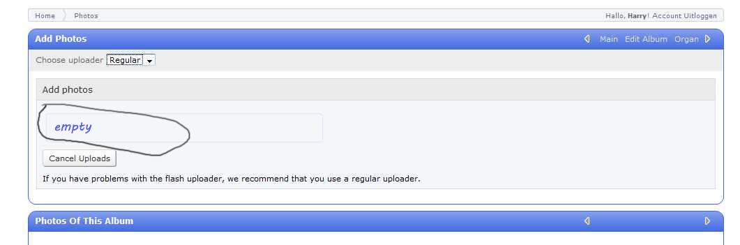 Only avatar uploading is working. The screen is opening for upload, but then nothing is happening, not flash, regulair, shoot or embed.