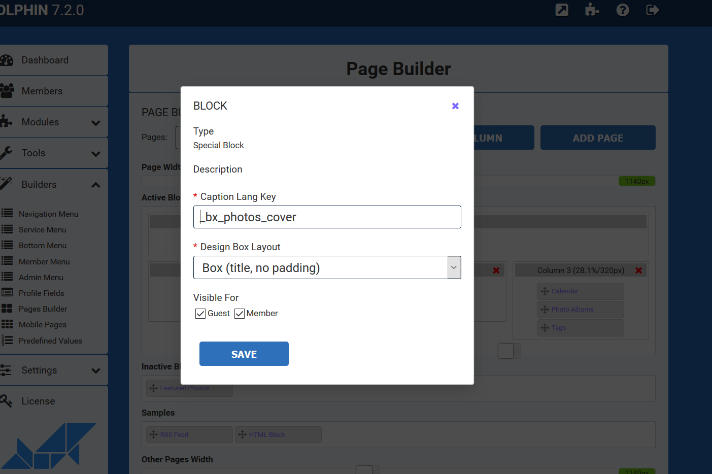cover block on photo home page - in page builder I can select any block design when clicking on the block and save, and works - other than 'no box'.