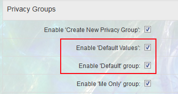 I am revisiting the topic of privacy settings. I enabled the "Default" privacy group and "Default Values". My take is that members can set default values and not have to set them each time. However, the whole system seems to be screwy. One, you check enable default group but then when you go to your privacy settings you can set the default group which does not make any sense because you don't want to set a default group, there should be a default group that applies the settings that the member sets under "Default Values" Plus, when you go to post, it is still set by default on public.