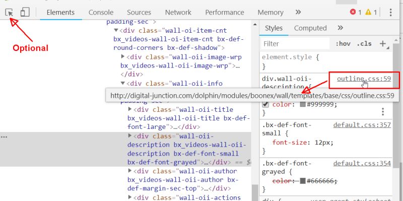 The thing is, your Outline is heavily modified as per your original screenshot. Either you or someone else made those modifications and you need to track them down. Your latest screenshot seems to show an unmodified Outline so you're obviously looking in the wrong place. Or maybe there's something you've failed to mention: Are you using a third party template? Did you make the original mods - red header, black justified description on yellow background? If yes, you need to locate those changes. If you're using Chrome, right click the black on yellow description and choose Inspect from the options. You should see something like the sample attached. Look at the information in the red box. If you hover over it, you will see the exact path to your code. If you're not seeing the right part, click where it says Optional and click the Outline description again. You can experiment by ticking or unticking boxes on the right, but it's not permanent. You need to make the changes in the code on your server. This also works for Firefox in a similar way. And yes, if you follow my original suggestion, it will delete the Outline history, but that may be a small price to pay if you can't resolve the problem. Finally, another program you can use is Agent Ransack. It will search your entire site for a single word, but you need to download a copy of the site to your PC first. |