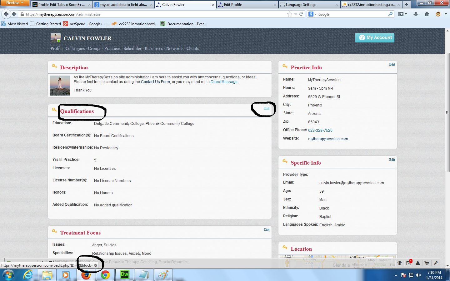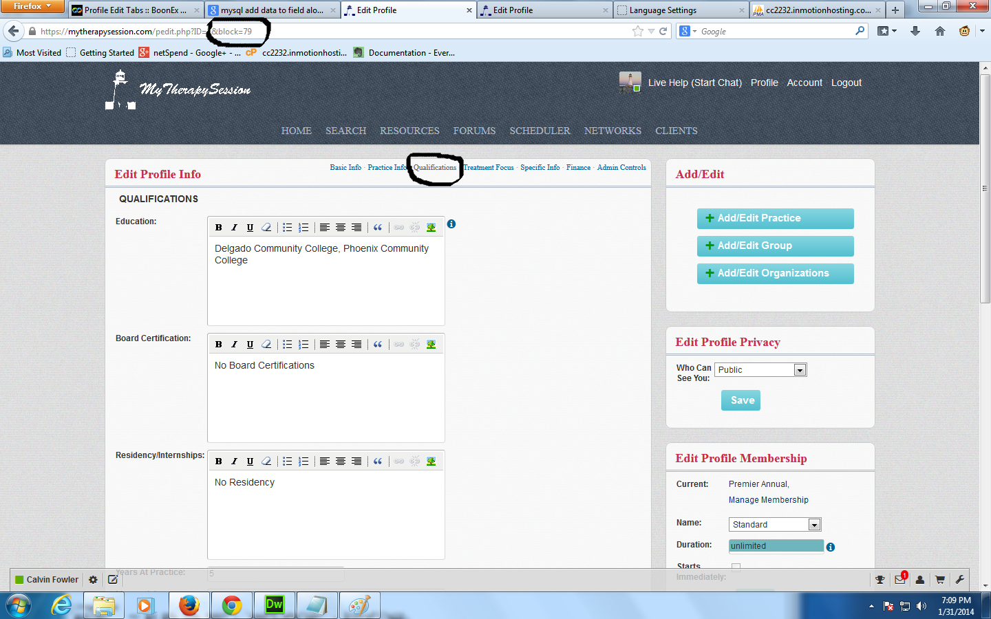 Now that I have that part out of the way, I am going to see what I can do to make an adjustment so that if you are looking at your profile page and you click edit for one of the blocks, it takes you to the corresponding edit tab. caredesign.net |