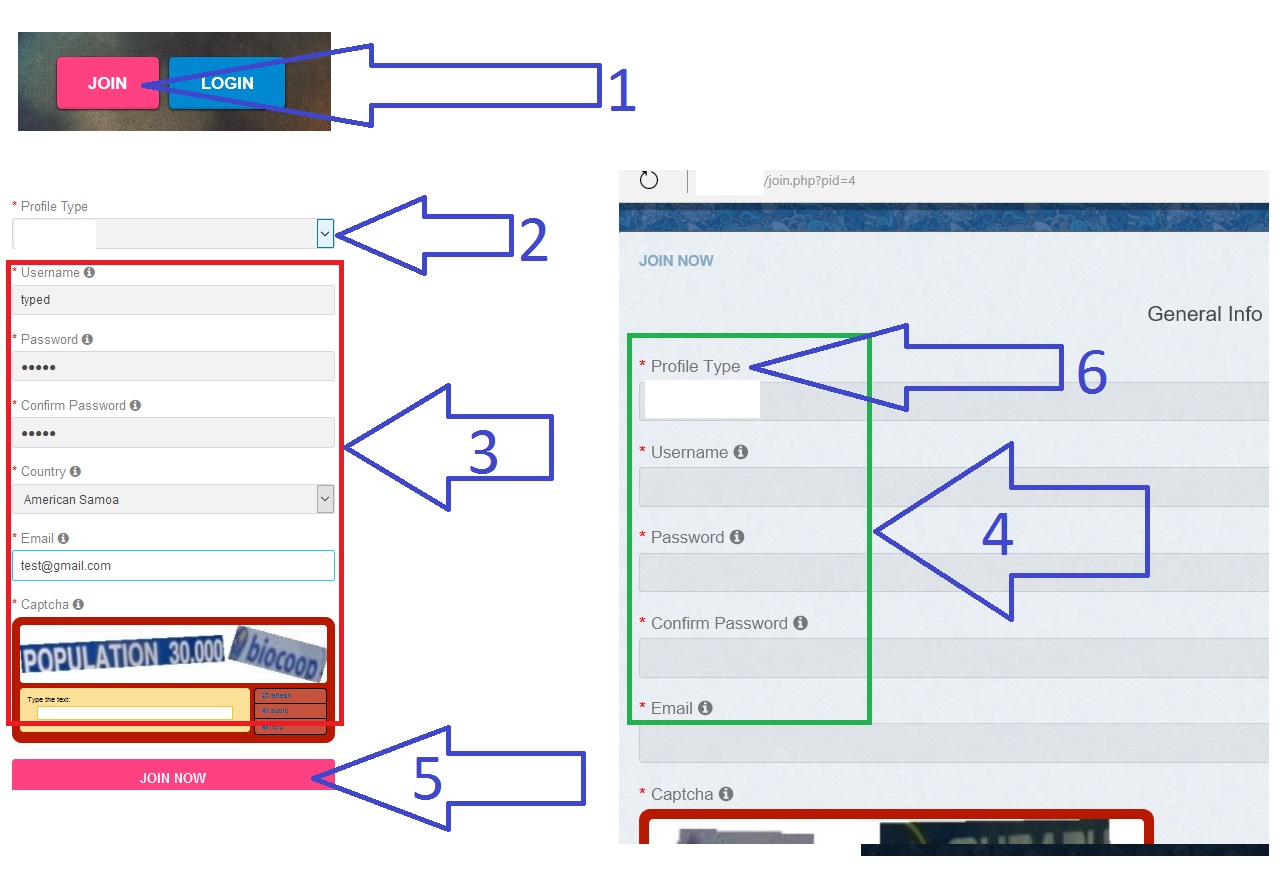 * join.php?pid=2 " {2} this numbers is generate by auto when your clients use this module to create new profile type, so its ID number for the profile number"
