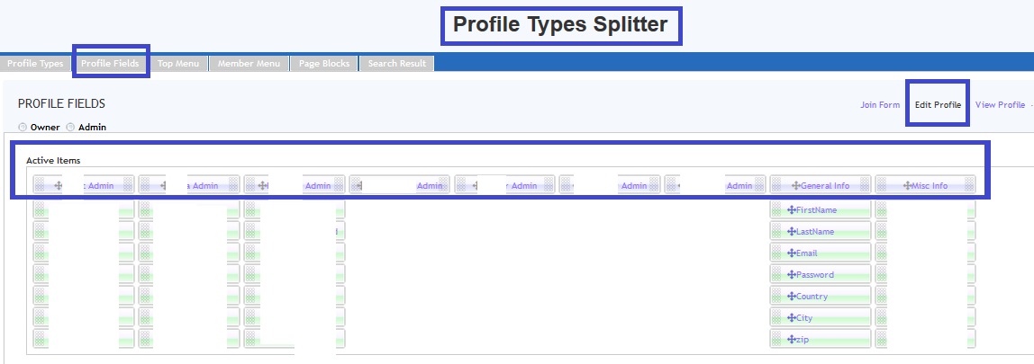 On the Profile Fields tab - if you'll click on any of the fields - it will bring you the field's properties form where you can manage a field's connections to different profile types. The same applies for most of the other tabs. Best Regards AntonLV - http://www.boonex.com/market/posts/AntonLV |