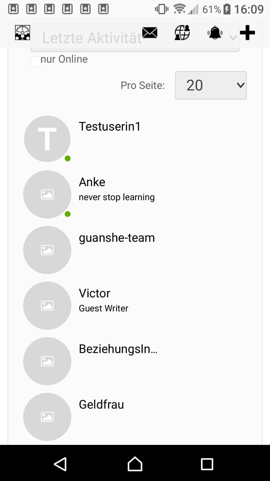 When I am logged in on my site (from desktop PC), I can see the profile pics from other members. Given they have set a profile pic.