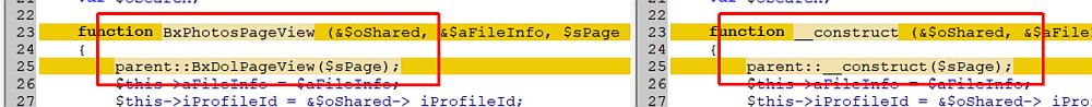I used WinMerge to get this information. It also tells you what the changes are. As I don't have any means of collecting the file names, I could supply screen shots if you need to know. It would probably be quicker to install WinMerge however. Some of the files have one or two changes. This is Photos/classes/BxPhotosPageView.php |