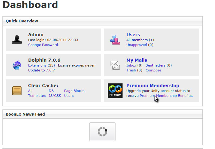 I just did a new D7.0.6 install and did the upgrade. After unzip the patch I got already BoonEx Feed loading forever! I got admin panel and home page photo attached Did you follow the manual steps during the upgrade process (e.g., clearing the cache folders)? BoonEx Certified Host: Zarconia.net - Fully Supported Shared and Dedicated for Dolphin |