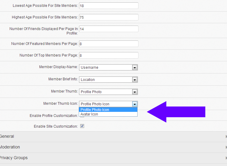 No, in the admin section, we have the ability to choose the tiny thumbnail, and "avatar icon or profile photo icon."