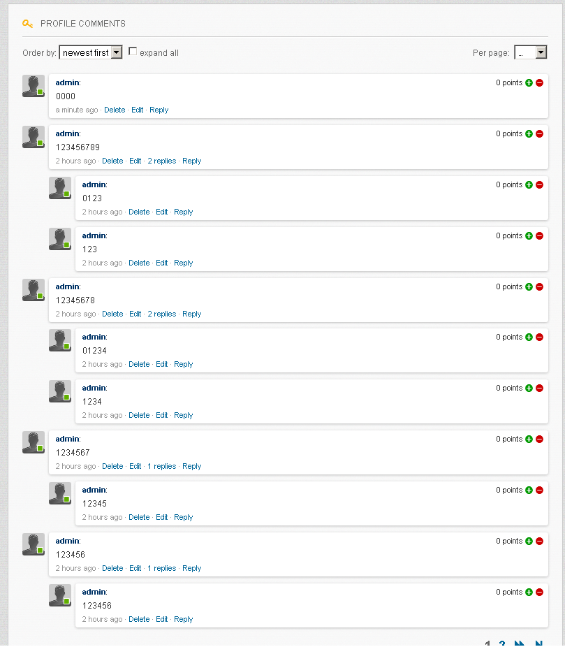 comment 1 (2 replies) --------- comment 1a --------- comment 1b comment 2 (1 reply, not expanded) comment 3 (0 replies)
