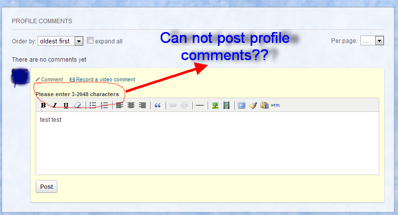 Comment can not be posted due to "Please enter 3-2048 charactres" warning ??