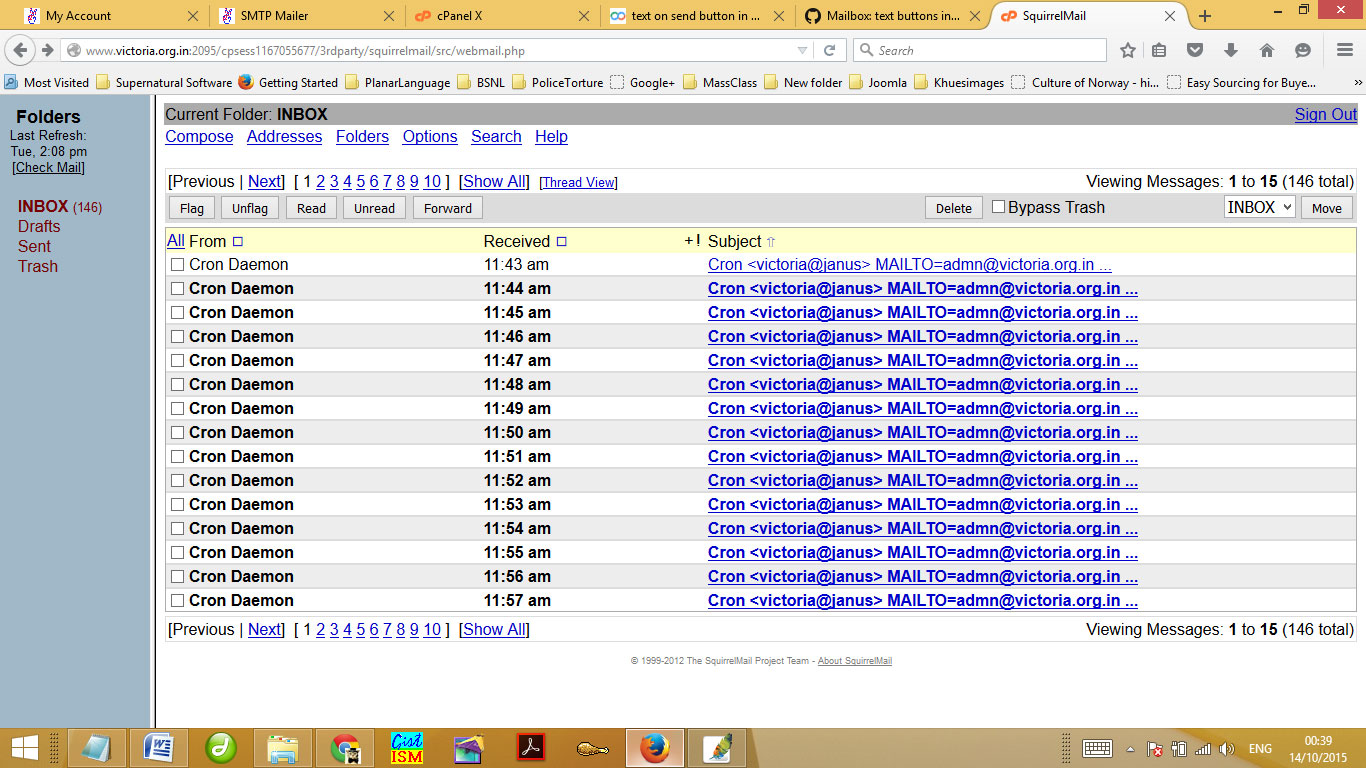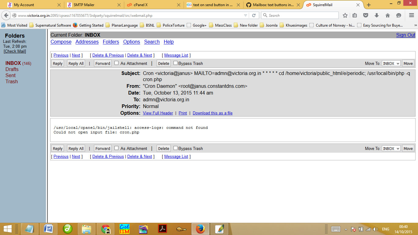 The second issue is connected to Cron job. After doing what had been instructed, my email inbox is regularly getting a lot of error messages. In fact, it is now in thousands. I am attaching three images connected to this issue.