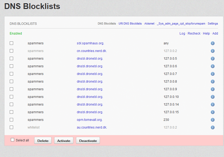 New anti-spam features (in 7.1.3) blocks proxies which was used for spamming. You can identify the reason of blocking, by checking Logs of different antispam features: Admin > Tools > Antispam > DNS Blocklists> Log Admin > Tools > Antispam > URI DNS Blocklists> Log Admin > Tools > Antispam > Akismet > Log Admin > Tools > Antispam > Stop Forum Spam > Log It is possible to disable some of Anti-spam checks in: Admin > Tools > Antispam > Stop Forum Spam > Settings But doing this is not recommended, one more safer way is to disable some of particular checks in DNS Blocklists related to proxies: Hover over (i) icon in dnsbl.dronebl.org. rows and find "HTTP Proxy" and "SOCKS Proxy" and try to disable them. Rules → http://www.boonex.com/terms |