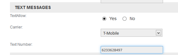 In the Profile Fields builder - Edit Profile, add 3 new fields - Text Allow, Carrier, and Text Number (I chose a separate field for the text number in case someone wants to receive texts on a number that may not be their main number)