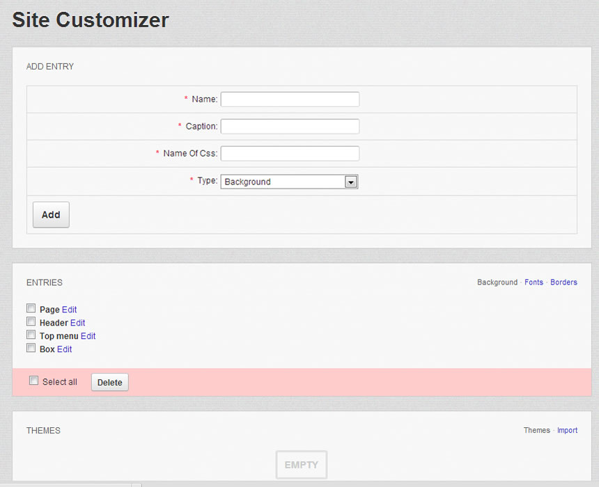 I have not looked at this site customiser module yet; however, looking at the screenshots that Newton posted, you can add to the things that can be changed just as you can with the profile customiser. So if padding on the boxes is not there, you can add it. Some things will need code changes as was required with the profile customiser; such as background-attachment, and background-size. If box headers is not included, you can add that. Just look at the existing entries to understand how to add new ones. If this comes with the default colour picker that is in the profile customiser, I suggest you find my tutorial on adding a new better colour picker that supports transparency. it only requires some minor code changes.