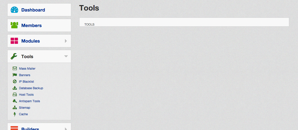This morning I logged into my Admin Area.... and nothing is populating, no modules, no "Builders", No "Tools" No NOTHING.... PLEASE SEE ATTACHED PHOTOS FOR REFERENCE.