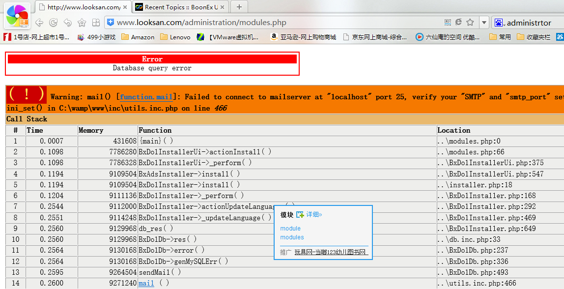 I'm not a module to add. An error: Warning: mail() [function.mail]: Failed to connect to mailserver at "localhost" port 25, verify your "SMTP" and "smtp_port" setting in php.ini or use ini_set() in C:\wamp\www\inc\utils.inc.php on line 466 |