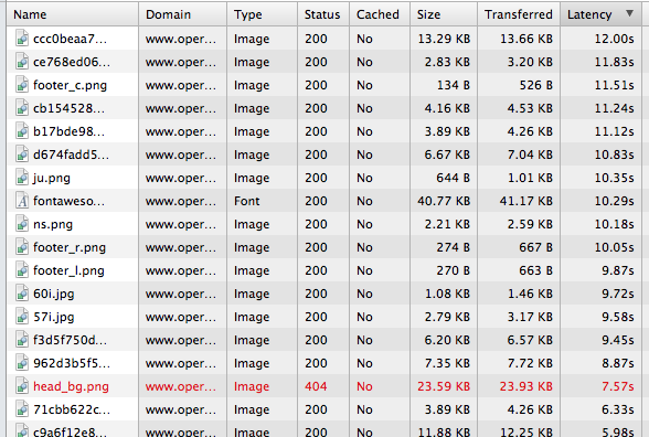 LOL @ that nesting Your content needs serious optimization. http://fpt.pingdom.com/#!/eQujfe/http://www.operationenduringfitness.com First response from server took 6.43 secs which is way too HIGH. You need to check server and profiler for the bottlenecks. As a comparison recently i transferred a site to digitalocean with a response time of 150 ms. EDIT: Looks like your apache is not able to handle concurrent connections. As more connection is made it takes longer to open new connection. You should probably try nginx if its your private server. so much to do.... |